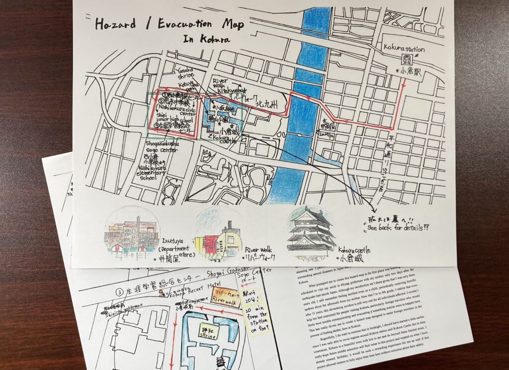 - 中学3年生による外国人旅行者のための防災マップ英語版作成