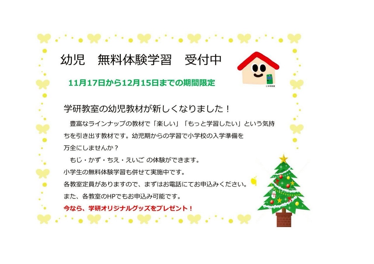 「幼児入会金0円キャンペーン」は12月16日付入会までが対象です。