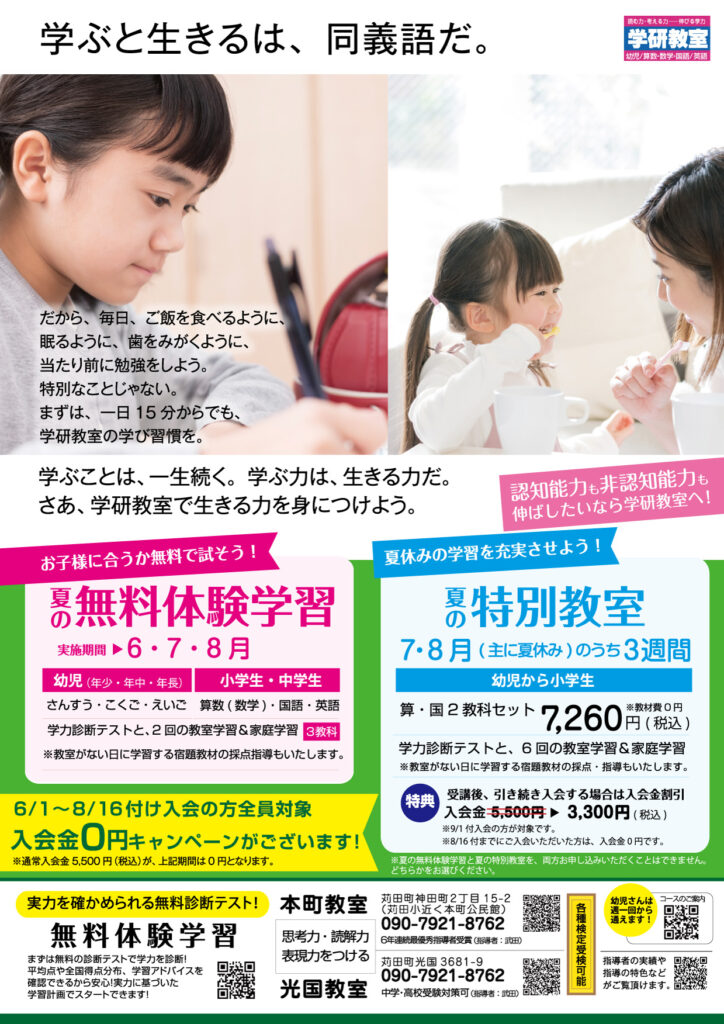 夏休みを有意義に過ごすために、学研教室の学び習慣、始めませんか?